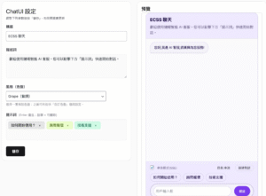 - 自訂開場白與提示詞:可在後台 ChatUI 設定中修改歡迎語與快捷按鈕。