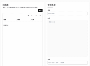 - 新增知識:輸入標題與內容,AI 將自動學習該知識。