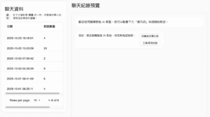 查看網站訪客與 AI 之間的所有對話紀錄,並包含工具調用的詳細記錄。