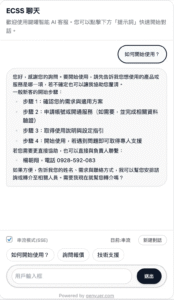 💡 ECSS 聊天視窗不僅是客服工具,也能作為行銷引導與線上諮詢入口,讓網站更具互動性與專業形象。
